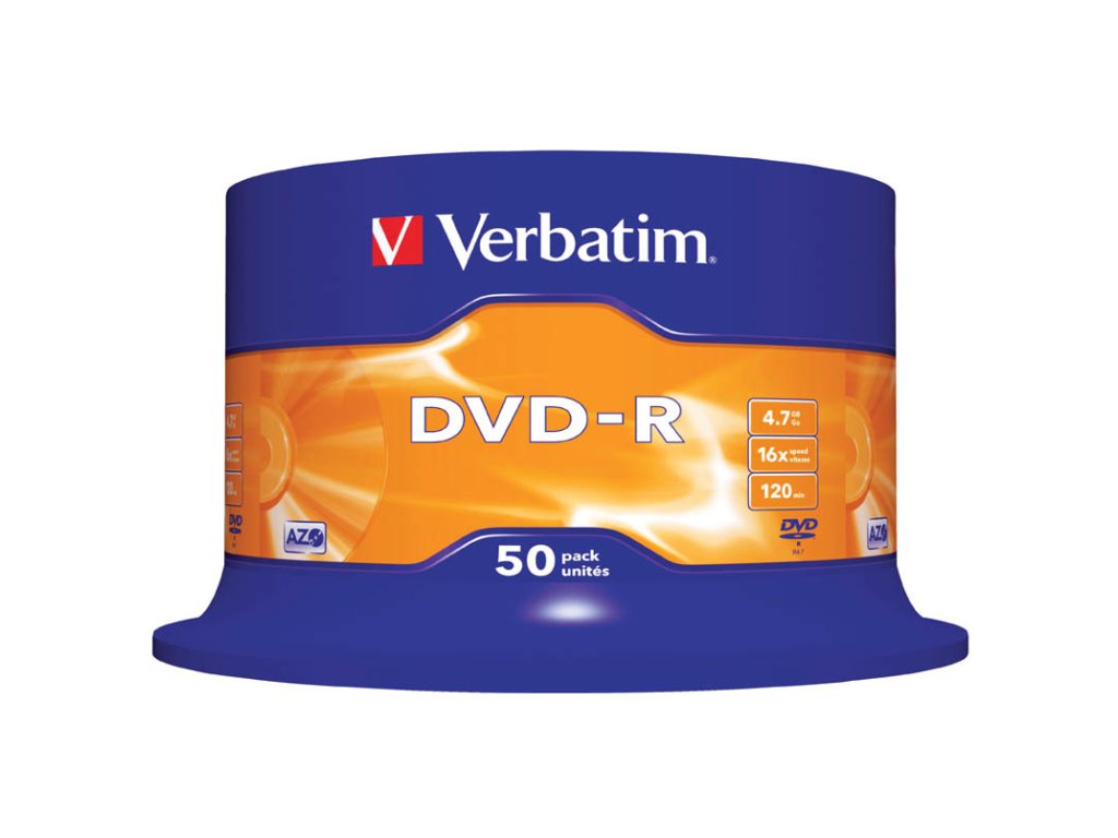 Disky DVD-R společnosti Verbatim byly navrženy tak, aby vyhovovaly potřebám uživatelů, kteří vyžadují vyšší kapacitu médií. Z toho důvodu jsou určeny zejména pro podnikatele a spotřebitele, kteří je využijí k archivaci dat, pro audio/video záznamy, multimediální přenosy a mnoho dalších!Uživatelům starších zapisovacích jednotek (osminásobná rychlost zápisu nebo nižší) a videorekordérů doporučujeme, aby se informovali u výrobce hardwaru a aktualizovali firmware svého počítače.Specifikace:* Kapacita: 4.7GB* Maximální rychlost zápisu: 16x* Baleni: 50-pack spindle* Povrch: Matt Silver * Zapisovací vrstva AZO* Vynikající životnost* Pro čtení na jednotkách DVD-ROM a v přehrávačích DVD-VideoDoplňkové parametry
