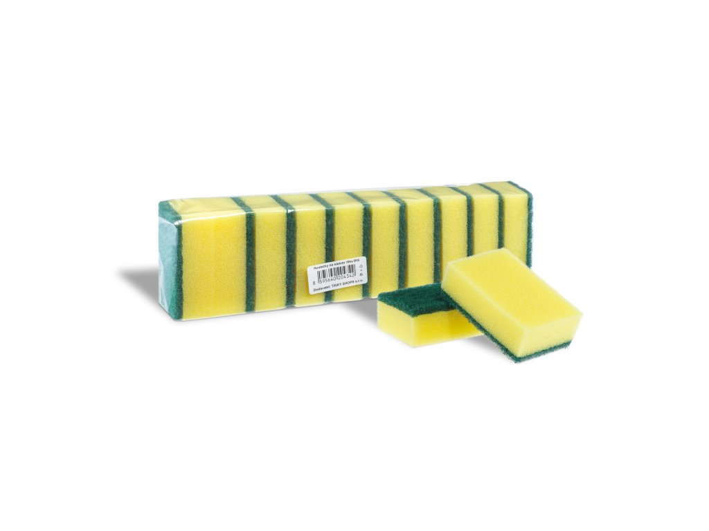Houbičky na nádobí 10 ks, BIG.Rozměr ks 8,5 x 5,5 x 3 cm. Houbička vhodná pro čištění veškerého nádobí v domácnosti.Houbička je tvarovaná pro snadný úchop a ochranu nehtů. Balení obsahuje 10 ks.Doplňkové parametry