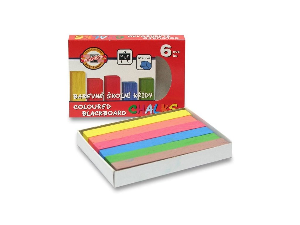 Sada 6 kusů čtvercových barevných tabulových kříd 12 x 12 x 100 mm, určených pro psaní na tabuli, vložených v krabičce s potištěným pouzdrem. Varování. Nevhodné pro děti do 3 let. Malé části se mohou odlomit. Nebezpečí udušení.Doplňkové parametry
