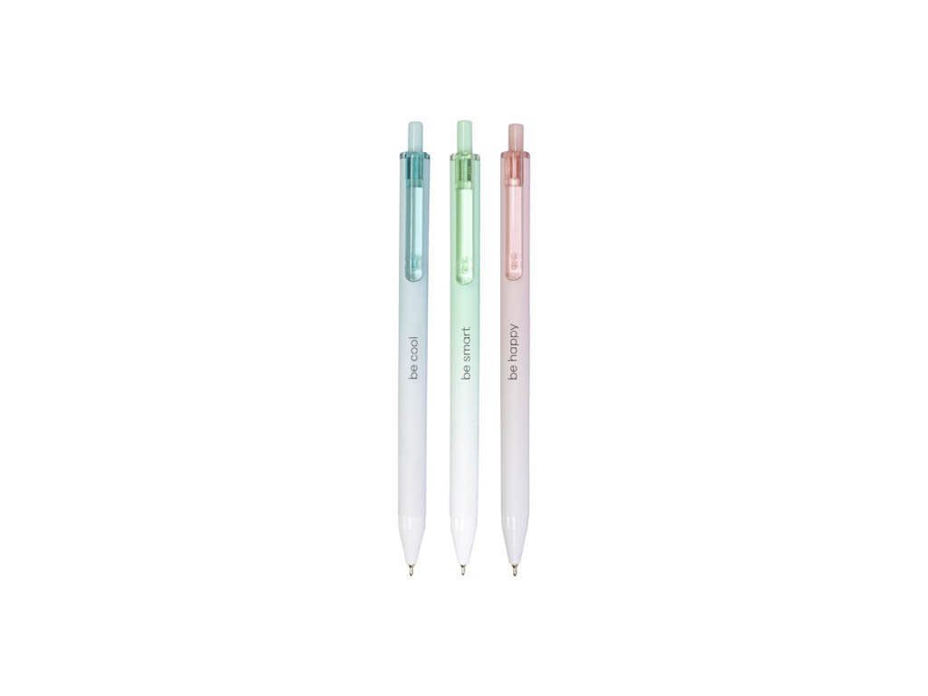 · tenké kuličkové pero v pastelových barvách s potiskem: be happy, be smart, be cool · olehčené plastové tělo se sametově hladkým povrchem · šířka stopy: 0,5 mm · náplň Easy Ink - inkoust s nízkou viskozitou pro pohodlnější a plynulejší psaní · náplň Easy Ink - modrá (obj.č.242180)Doplňkové parametry