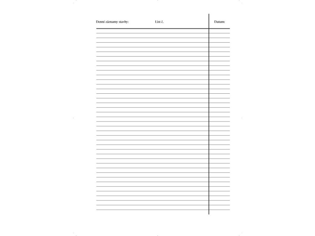 3 x 20 číslovaných listů pro denní záznamy stavby, označení NCR = samopropisující papírDoplňkové parametry