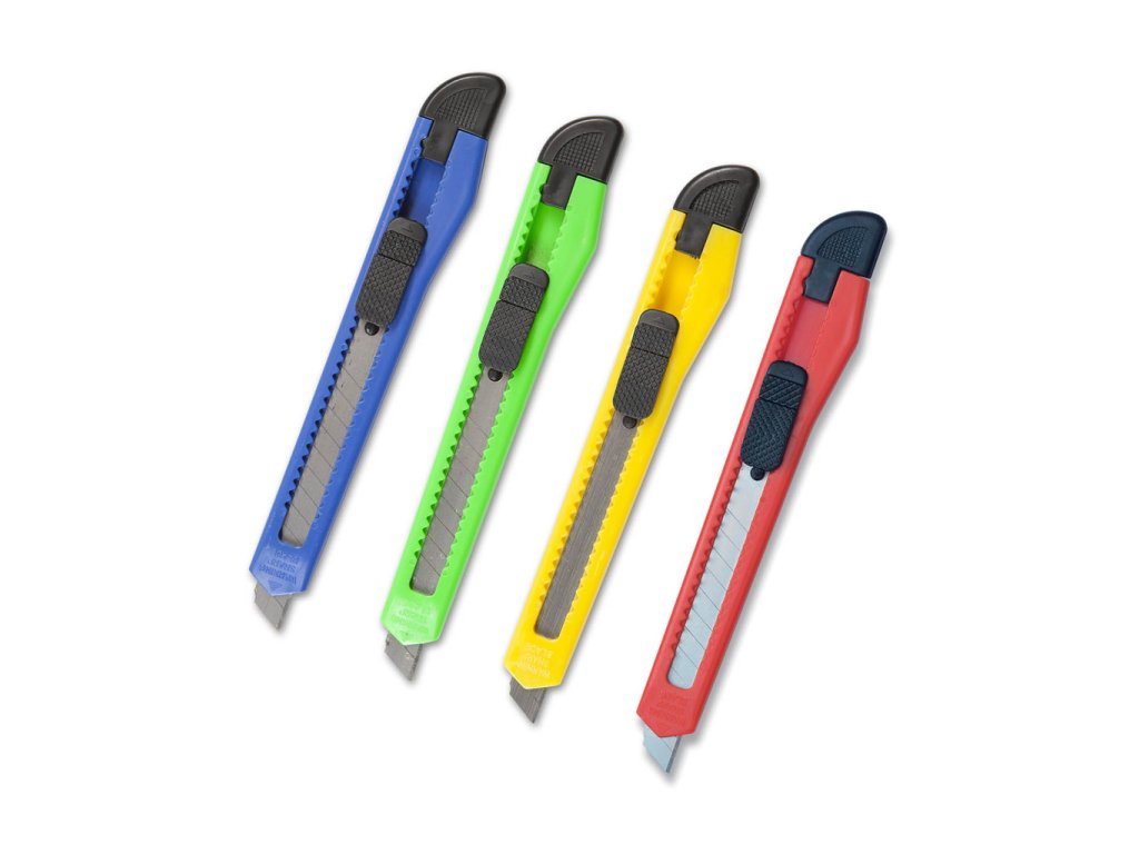 odlamovací nože s plastovým tělem v několika barvách, možnost výměny nožů, uzavírací pojistka, protiskluzový povrchDoplňkové parametry