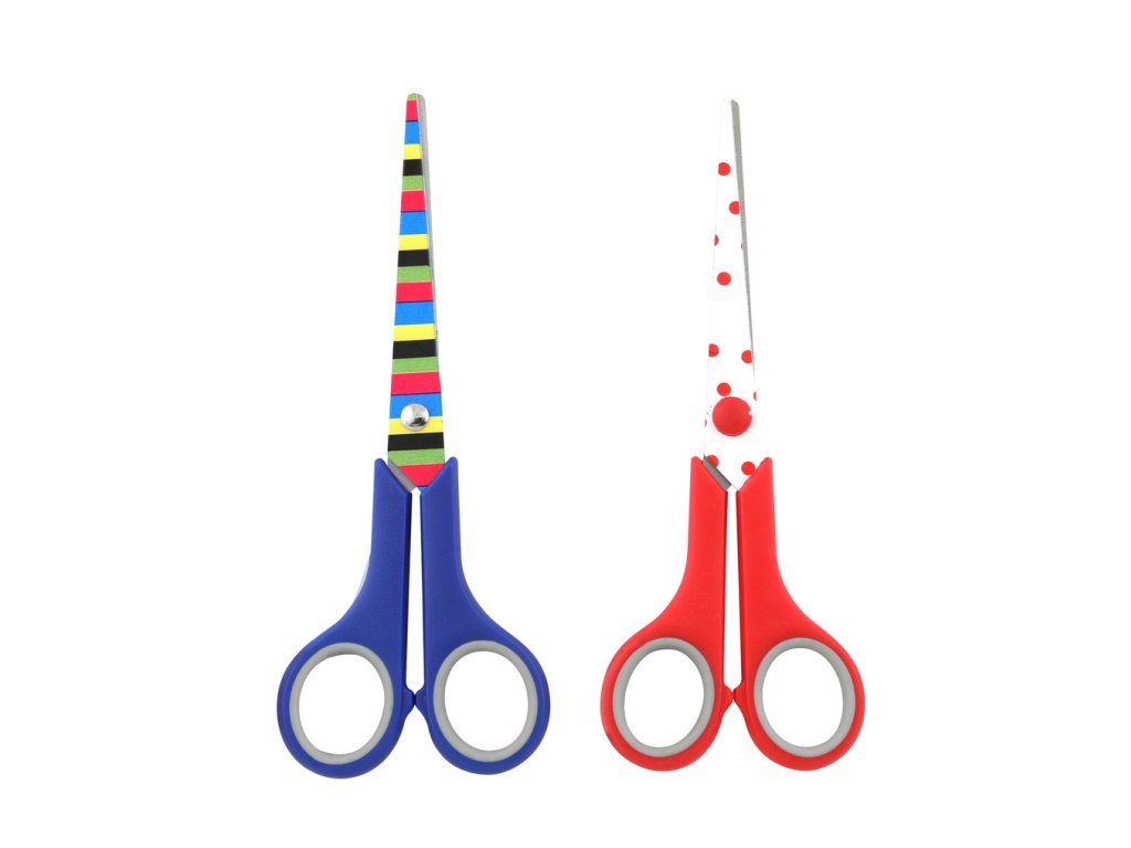 Atraktivní nůžky s nožnicemi z nerezové oceli a pogumovaným symetrickým úchopem. Barevné nůžky o délce 17cm.Doplňkové parametry
