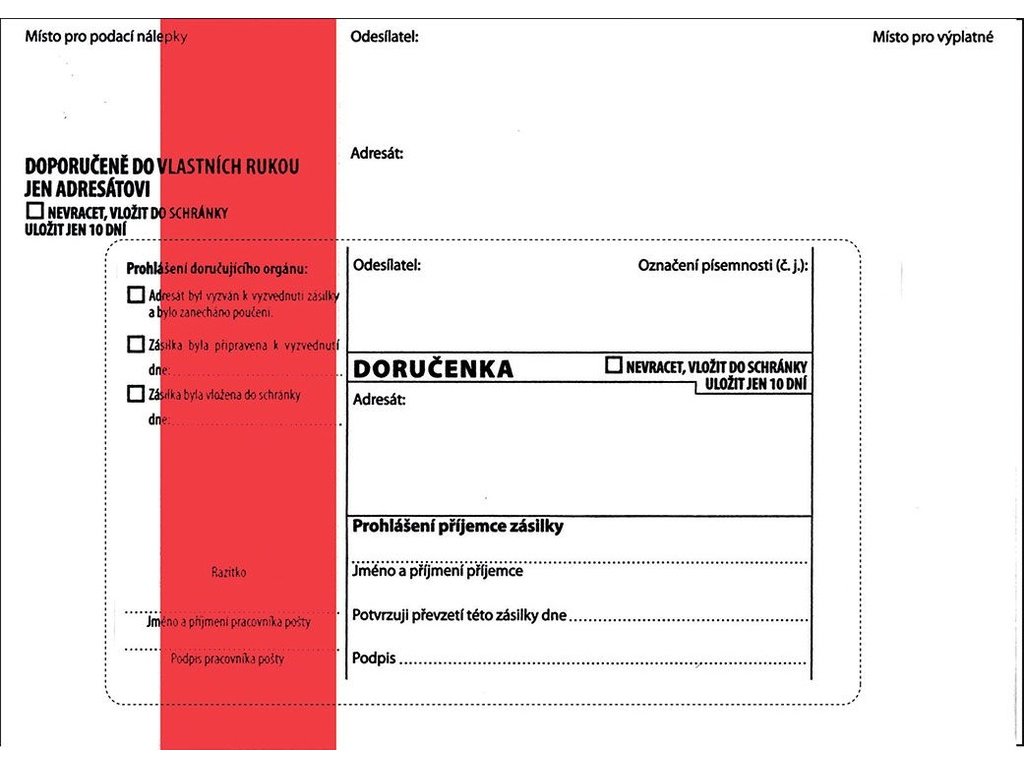 Obálky B6 s doručenkou, vytrhovací okénko, s červeným pruhem / 100 ks
