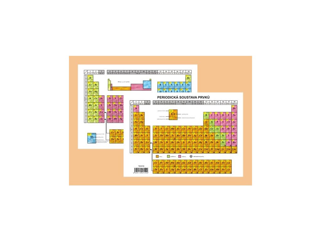 oboustranné periodické soustavy prvků, lamino podložky s nápovědou (z jedné strany podložka do sešitu, z druhé nápověda) a šablona ČR (barevný mix)Doplňkové parametry