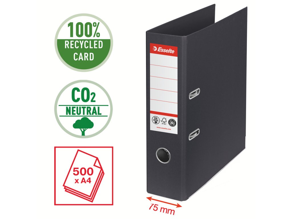 Pořadač pákový Esselete CO2 neutrální - A4 / hřbet 7,5 cm / černá