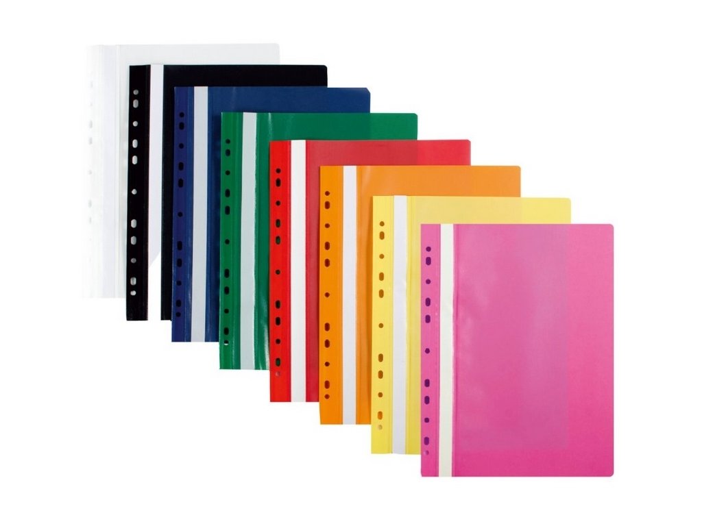 vyrobeno z kvalitního polypropylenu, multiperforace umožňuje uložení do pákového i kroužkového pořadače, přední průhledná strana desek nezakrývá titulní stránku Vašeho dokumentu, bílý papírový zasunovací štítek podél hřbetu slouží k označení obsahu desekDoplňkové parametry